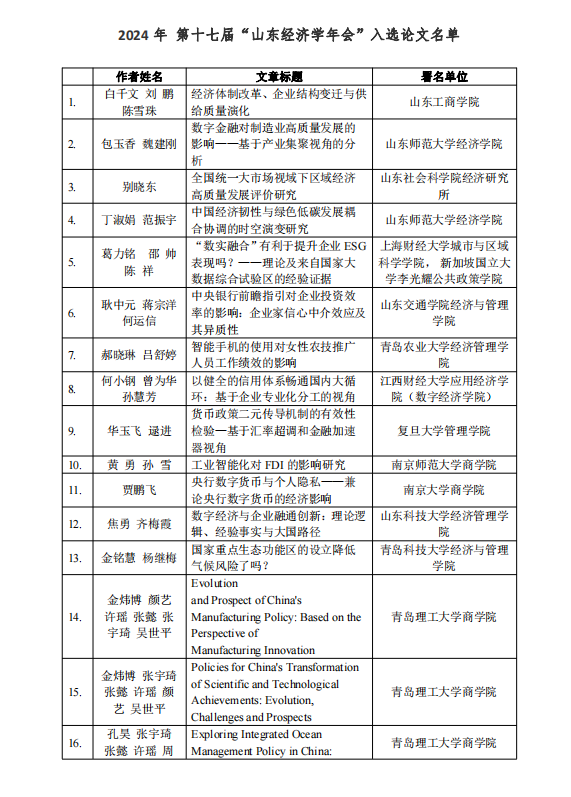 2024年5月24--25日,第十七届“山东经济学年会”将于必赢线路检测中心召开,会议期间将进行经济学各领域学术交流。本次年会共收到论文122篇,经评审,最终有66篇论文入选(名单见附表)。相关通知已通过邮件发送至入选论文作者邮箱,敬请查收。