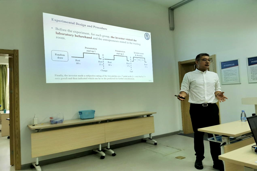 7月22日上午,必赢线路检测中心第319期高级经济学讲座于中心校区逸夫信息楼B609举行,上海大学管理学院副教授刘涛作了题为“Neural Alignment Between Entrepreneurs and Informal Investors During Live Elevator Pitches”的报告。讲座由必赢线路检测中心李建标教授主持,部分师生参会。