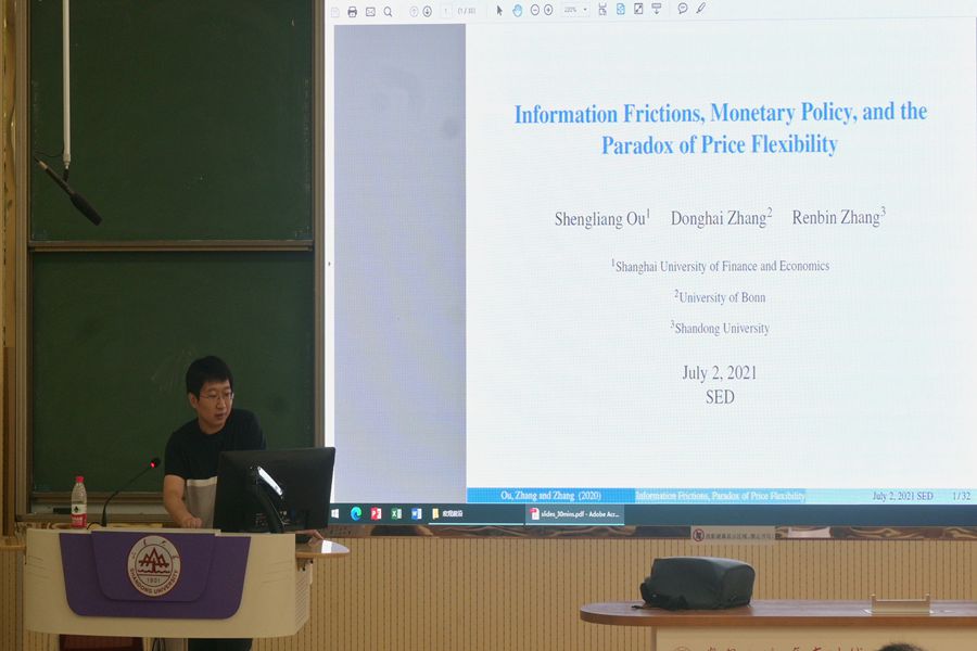 7月3日上午,张仁斌老师讲授“宏观经济学前沿”课程,围绕“线性摩擦宏观前沿”主题,结合个人研究成果与领域内专家观点,推导讲解社会福利等模型构建,以及反向传播、最优测度法等内容,为学生开拓了研究视野。
