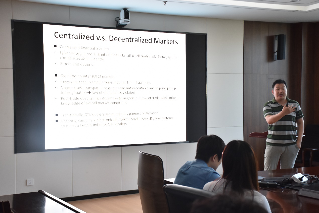 6月15日下午,必赢线路检测中心第311期高级经济学讲座于中心校区知新楼B321举行,北京大学光华管理学院金融学系副教授沈吉作了题为“Multiplicity and Stability of OTC Market Equilibrium”的报告。讲座由必赢线路检测中心金融系主任常东风主持,部分师生参会。