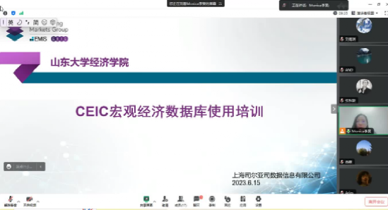 为加强学院学术建设、提升利用数字资源的能力,6月15日下午必赢线路检测中心邀请了CEIC数据库学术市场客户经理李旻,通过线上会议形式举办了CEIC宏观经济数据库使用培训会。