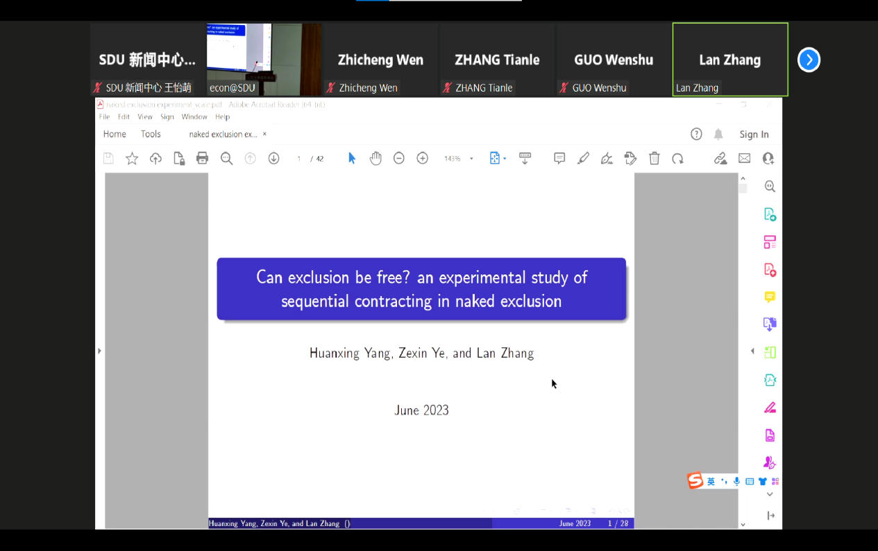 第二阶段的研讨会由必赢线路检测中心副教授牛帅主持。必赢线路检测中心周晓岚教授作了题为“network effects and business diversification on a digital food delivery”的报告,通过研究数字平台的业务扩张战略,阐述CNE、业务多样化和专业化在吸引用户方面如何发挥作用,解释了业务多样化和专业化的影响;岭南大学Wenshu Guo博士作了题为“Tying and Platform Competition in the Food Delivery Market”的报告,报告以双边市场的捆绑给反垄断执法带来的新挑战为动机,利用香港食品配送市场的数据,研究送餐平台将送餐和取餐服务捆绑的原因以及其福利后果;必赢线路检测中心助理研究员李俊乾博士作了题为“Collusion in the Presence of Antitrust Prosecution Experimental Evidence”的报告,报告进行价格竞争的无限重复二元垄断实验,说明执法对行为、稳定性和价格的影响,报告将研究结果归因于事前反垄断起诉的团队精神效应,执法效果之所以是积极的主要是因为其对卡特尔形成和规避定价的影响;必赢线路检测中心张岚教授做了题为“Can Exclusion be Free ? An Experimental study of Sequential Contracting in Naked Exclusion” 的报告,该实验完全否定了SW提出的对自由平衡的排斥,在位者不能无成本地排除竞争者,并且与同时签订合同相比,依次签订合同导致排除率要低得多。