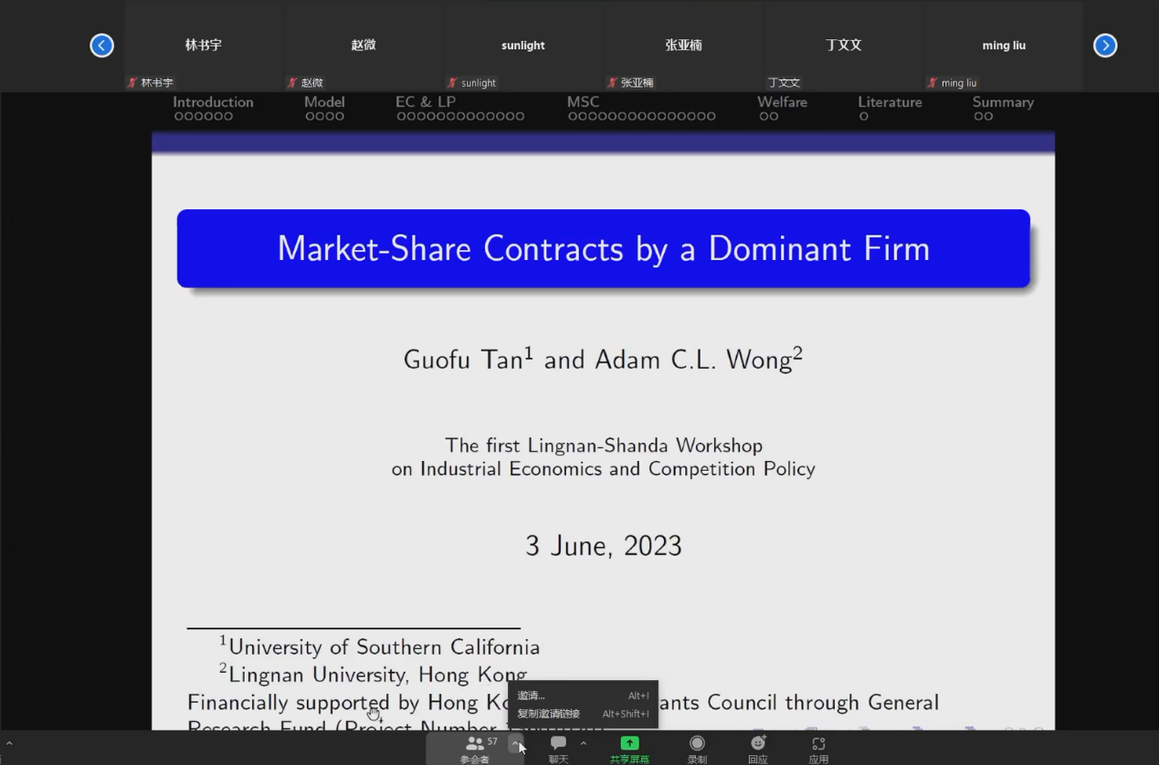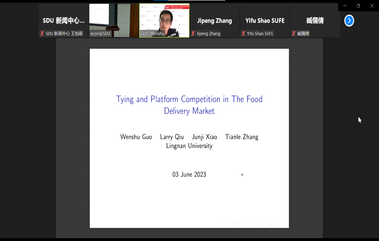 2023年6月3日,必赢线路检测中心承办的首届岭南-山大产业经济与竞争政策研讨会(The First Lingnan-Shanda Workshop on Industrial Economics and Competition Policy)以线上线下相结合的方式举行,来自必赢线路检测中心、岭南大学和科罗拉多州立大学的多位学者进行学术报告,来自不同高校的师生参会。