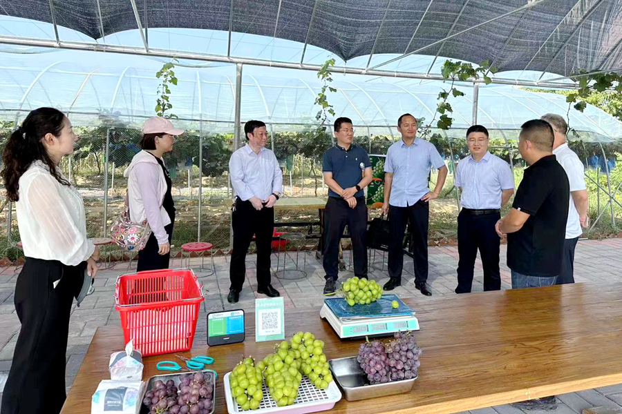 调研组一行先后前往刘店镇李楼村、姚楼村、伍桥村和后山村进行实地调研,认真听取了项目负责人相关情况介绍,围绕葡萄、草莓、金丝皇菊、金银花等产业战略规划、运营管理、市场细分以及产品销售等方面的情况,与企业相关负责人对企业经营理念、市场定位、核心竞争力以及推进“校地结对帮扶”工作进行沟通交流。调研组还前往竹沟革命纪念馆接受党性教育,就竹沟镇的小提琴、中药种植产业进行了学习考察。