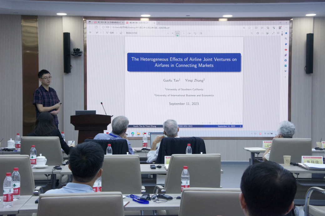 对外经贸大学国际经济贸易学院助理教授张印琦以“The Heterogeneous Effects of Airline Joint Ventures onAirfares in Connecting Markets”为题,研究合资企业对国际航空业转机市场的影响。理论分析表明,合资企业可以通过消除双重边际化问题来降低代码共享行程(即由不同航空公司运营的行程)的价格,并且会提高同一市场中的同线行程(即由同一航空公司运营的行程)的价格。这些影响的大小和方向还取决于不同市场中的互补品和替代品网络。他通过关注墨西哥航空和达美航空之间的合资企业,实证评估了合资企业对不同网络市场中不同行程的影响。实证研究结果总体上与理论预测一致,提供了关于合资企业对不同市场中行程价格的异质性影响的新证据。