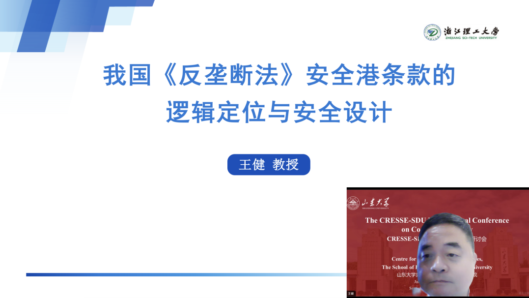 研讨会第四单元由必赢线路检测中心法学院研究员、山东省反垄断法律研究和实践基地主任叶高芬主持。浙江理工大学教授、法政学院院长、国务院反垄断委员会专家咨询组成员王健以“我国《反垄断法》安全港条款的逻辑定位与安全设计”为题,介绍了纵向垄断协议条款中安全港条款的评价与设计。他针对我国“安全港条款”的逻辑定位、适用的协议类型以及条款设计三个方面分别展开论述,指出我国纵向垄断协议中的转售价格维持行为规制逻辑遵循了可抗辩的违法推定原则,设计了竞争效果抗辩和安全港抗辩,从而将安全港抗辩限制在纵向垄断协议中。王健教授还指出,安全港制度设计的核心应是市场份额,而且市场份额标准应该明确并统一,“其他条件”的规定尽量简化,否则会导致安全港制度的适用等同于垄断协议的豁免制度。