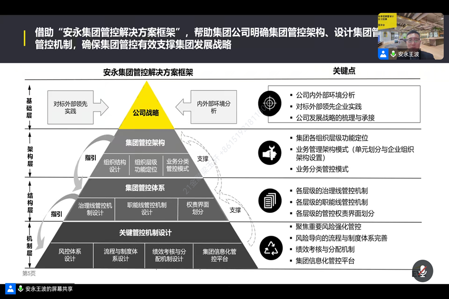 直播课上,王波老师首先从集团管控的痛点与面临的挑战入手,详细介绍了集团管理中“组织层级定位不清晰”“集团管控模式不精准”“公司治理机制未做实”三大难题,着重阐释了企业总部与子公司之间的组织架构、权责划分方面的平衡问题。