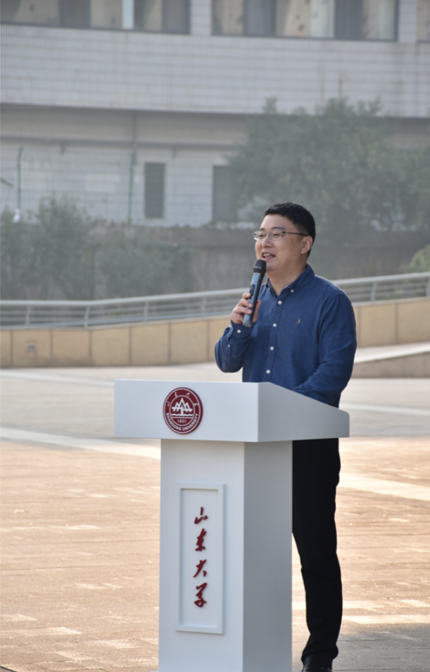 董春杰在致辞中指出,体育运动不仅是增强身体素质的途径,更是团结、友爱、协作精神的传递途径,学院始终坚持“山大体育,育贤图强”的体育育人理念,不断探索更多形式、创造更多机会,为师生提供丰富多彩的体育运动平台。他对参加本次户外活动的同学们提出了几点希望。一是希望同学们以体育促交流,以体育促团结,以体育促进步;二是希望同学们能够尽情焕发青春拼搏力量;三是希望同学们能够充分发挥青年学生的引领力,以青春之力带动全民健身;四是希望同学们能够在享受户外运动乐趣的同时,做自己安全的第一责任人。