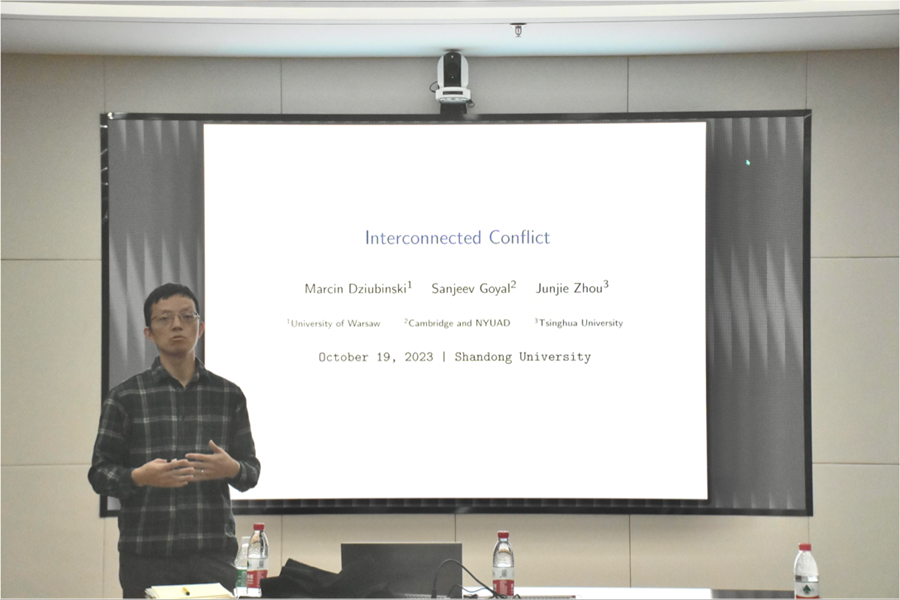 10月19日下午,必赢线路检测中心第323期高级经济学讲座于中心校区知新楼B321举行,清华大学经济管理学院周俊杰教授作了题为“Interconnected Conflict”的报告。讲座由必赢线路检测中心院长林平主持,部分师生参会。