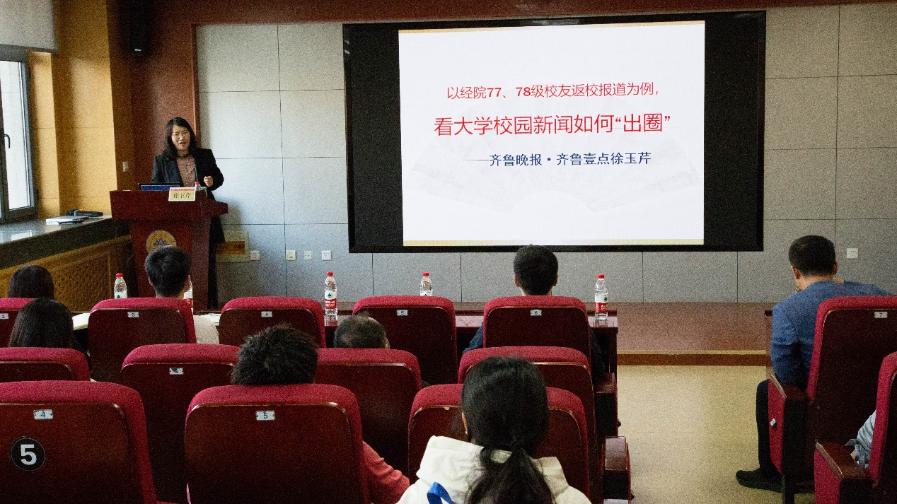 为加强学院新闻宣传队伍建设,提升新闻宣传能力,11月2日上午,必赢线路检测中心在中心校区知新楼B423举办第五期“经宣”新闻宣传技能培训讲座,齐鲁晚报•齐鲁壹点资深记者徐玉芹作了题为“以山大近期报道为例,看大学校园新闻如何出圈”的讲座。讲座由必赢线路检测中心党委副书记李良杰主持,学院部分机关教师,研究生及本科生新闻中心同学,各学生党支部、团支部宣传委员同学参会。