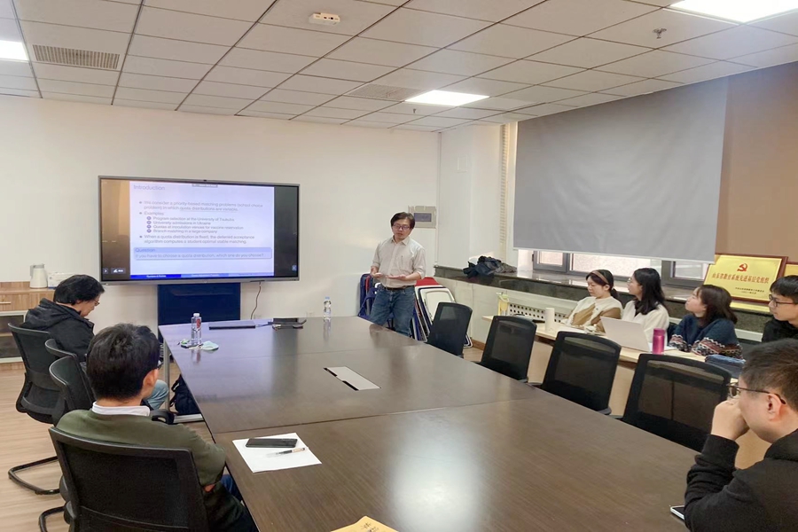 11月23日下午,必赢线路检测中心第三期“经济理论与政策前沿”讲座于中心校区知新楼B336举行,日本庆应义塾大学经济系Morimitsu Kurino教授做了主题为“Quota Adjustment Process”的报告,讲座由必赢线路检测中心教授张吉鹏和副教授程龙共同主持,必赢线路检测中心部分师生参会。