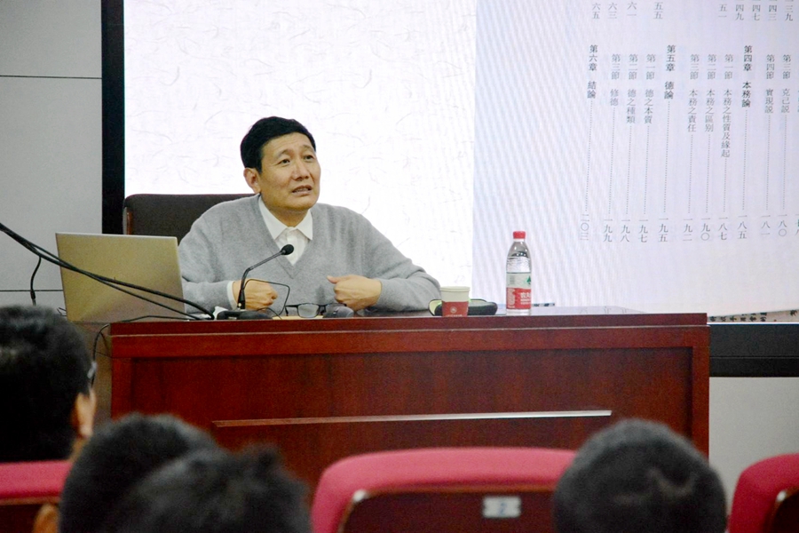 讲座围绕修身、治学和成才三方面内容展开。关于修身,杜泽逊教授首先梳理了修身与齐家、治国、平天下之间的逻辑关系,并将修身的概念置于人与人、人与社会的关系中进行解读,启发同学们强健体魄、磨练意志,遵守法律和伦理道德,维护社会的礼让威仪;关于治学,他介绍了何谓“治学之道”,指出了基础培养在其中的“压舱石”地位,大学生应在认真学习本专业核心课程的基础上博览群书、勤于交流,善于总结学习中的经验教训,真正做到严谨治学;关于成才,杜泽逊教授指出,本科是成才的起步阶段,研究生是成才的阶梯,同学们要在实践中读万卷书、行万里路,在未来工作中提升观察与思考能力,培养持之以恒的优秀品德,以实现自身更远大的理想。