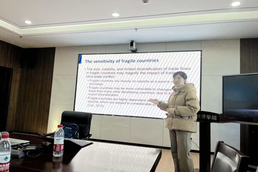 杜映昕发现,非互惠贸易优惠制(NRTPs)是为了促进发展中国家向工业化经济体的出口而制定的。她探究了通过NRTPs的出口能否起到降低脆弱经济体国内冲突的作用。研究结果表明,增加对NRTPs给惠国的出口可以降低脆弱国家内部冲突爆发的风险,但较高的NRTPs覆盖率并不一定有助于提高这一和平促进效应,这是因为NRTPs出口的影响因产品而异。农产品出口的增加扩大了和平促进效果,而矿产出口则起到了相反的作用。在报告过程中,杜映昕与参会人员就有关问题展开了深入探讨。
