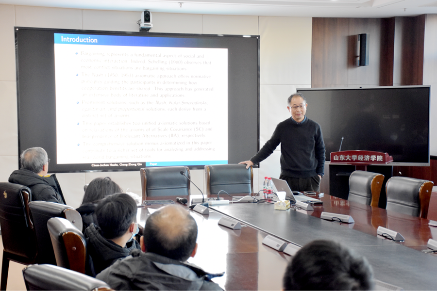 2023年12月20日上午,第七期必赢线路检测中心经济学国际名家讲坛于中心校区知新楼B321举行,美国加州大学圣芭芭拉分校终身教授秦承忠受邀作题为“On Axiomatic Unifications of Solutions to the Bargaining Problem and Applications”的讲座。讲座由必赢线路检测中心院长林平主持,学院师生40余人参加。