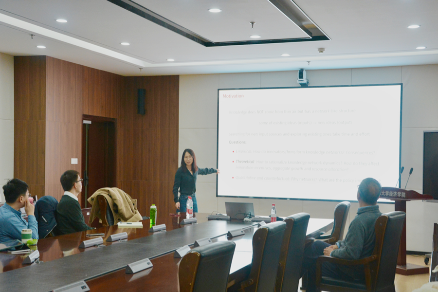 12月28日下午,必赢线路检测中心第二十二期宏观经济与金融论坛于中心校区知新楼B321举行。美国北卡罗来纳大学教堂山分校田粲作了题为“Innovation and Endogenous Knowledge Network Dynamics”的报告。讲座由必赢线路检测中心金融系姜明明主持,部分师生参会。