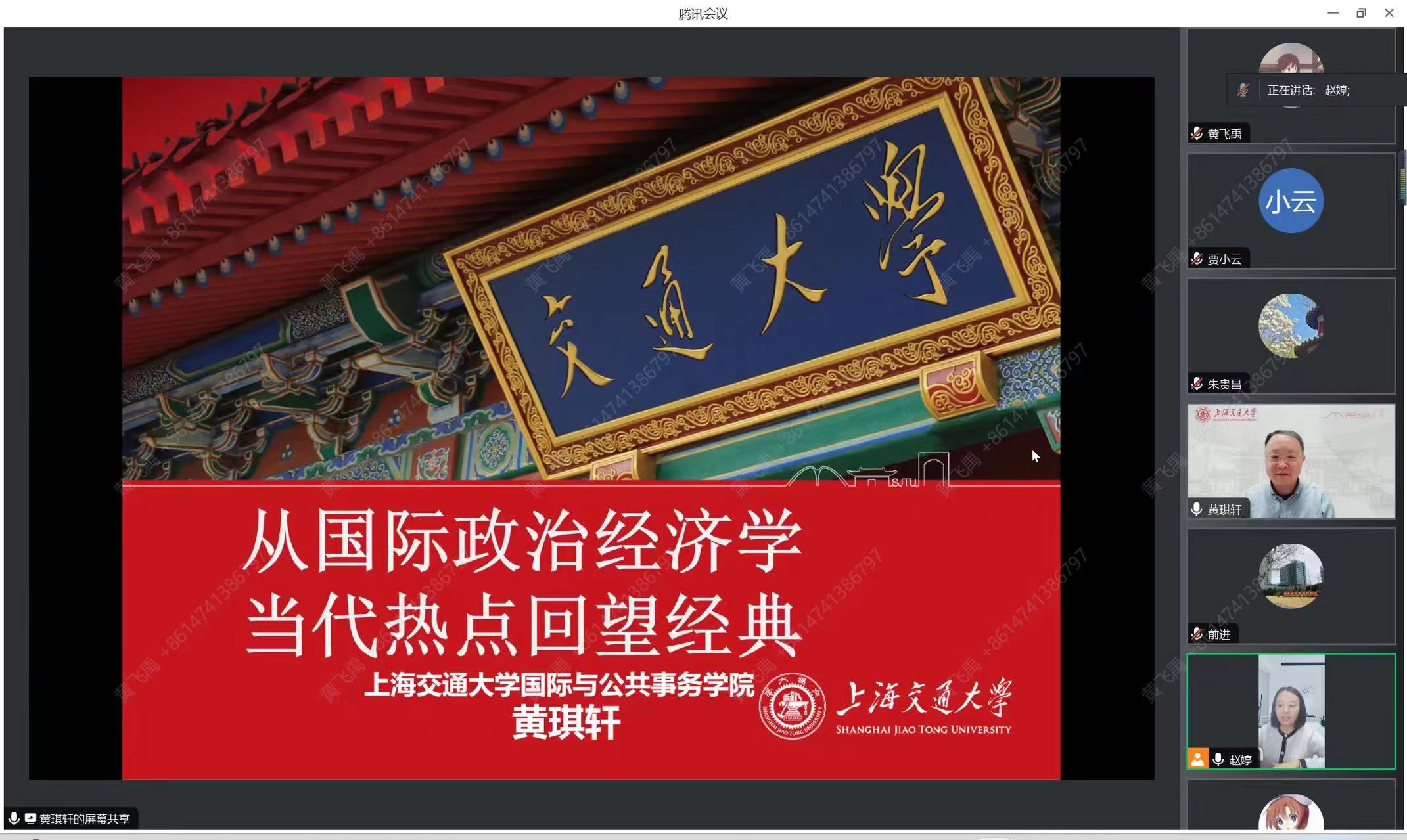 3月29日晚,必赢线路检测中心第27期PPE讲座以线上形式举行,上海交通大学国际与公共事务学院副院长黄琪轩受邀作了主题为“从国际政治经济学当代热点回望经典”的报告,讲座由必赢线路检测中心副院长孙淑琴、政治学与公共管理学院副院长赵婷联合主持,PPE基地班学生参会。