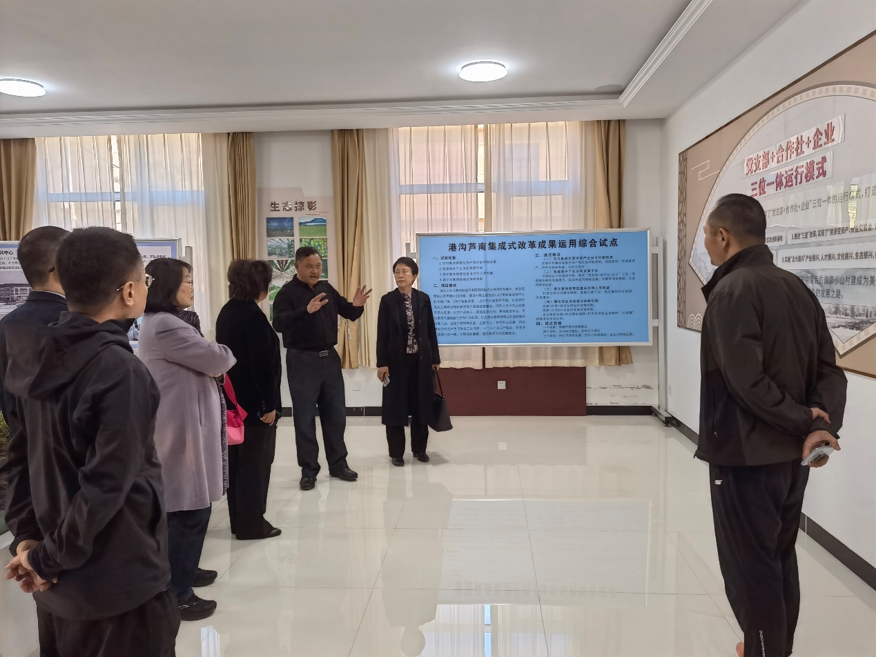 随后,调研团参观了芦南村山楂种植基地、云台田园综合体、芦南村居、桃花岭上民俗、党群服务中心等地,并与芦南村委、支部书记贾虎平进行了深入交流。在贾虎平的带领下,芦南村从过去的自然灾害村、贫困村,发展成如今远近闻名的文明先进村、富裕村,蹚出了一条“党支部+合作社+企业”三位一体的发展之路,成为乡村振兴齐鲁样板村。
