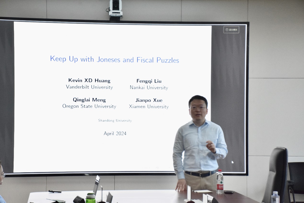 大萧条重新引起了人们对扩张性财政措施和对私人决策相关的社会比较效应的极大兴趣。报告引入“攀比(Keeping up with Joneses)”的概念,表明其可以使一个标准的新凯恩斯模型在对扩张性财政政策做出反应时,在定性和定量上产生现实的总体波动,从而解决财政难题。首先,在实证层面,报告揭示了有关未预期的政府支出增加影响的三个经验规律:一是私人消费倾向于上升;二是价格和通胀倾向于下降;三是这些数量和价格反应不太可能受到(如存在)对全要素生产率(TFP)的冲击的影响驱动。其次,报告构建并估计了一个结构模型,该模型允许在家庭决策中进行社会比较,即引入了“攀比(Keeping up with Joneses)”的概念,在此基础上这个模型对上述经验规律进行了解释。讲座过程中,薛涧坡教授就模型设定、概念核心等内容进行了详细说明,与会师生积极参加讨论。