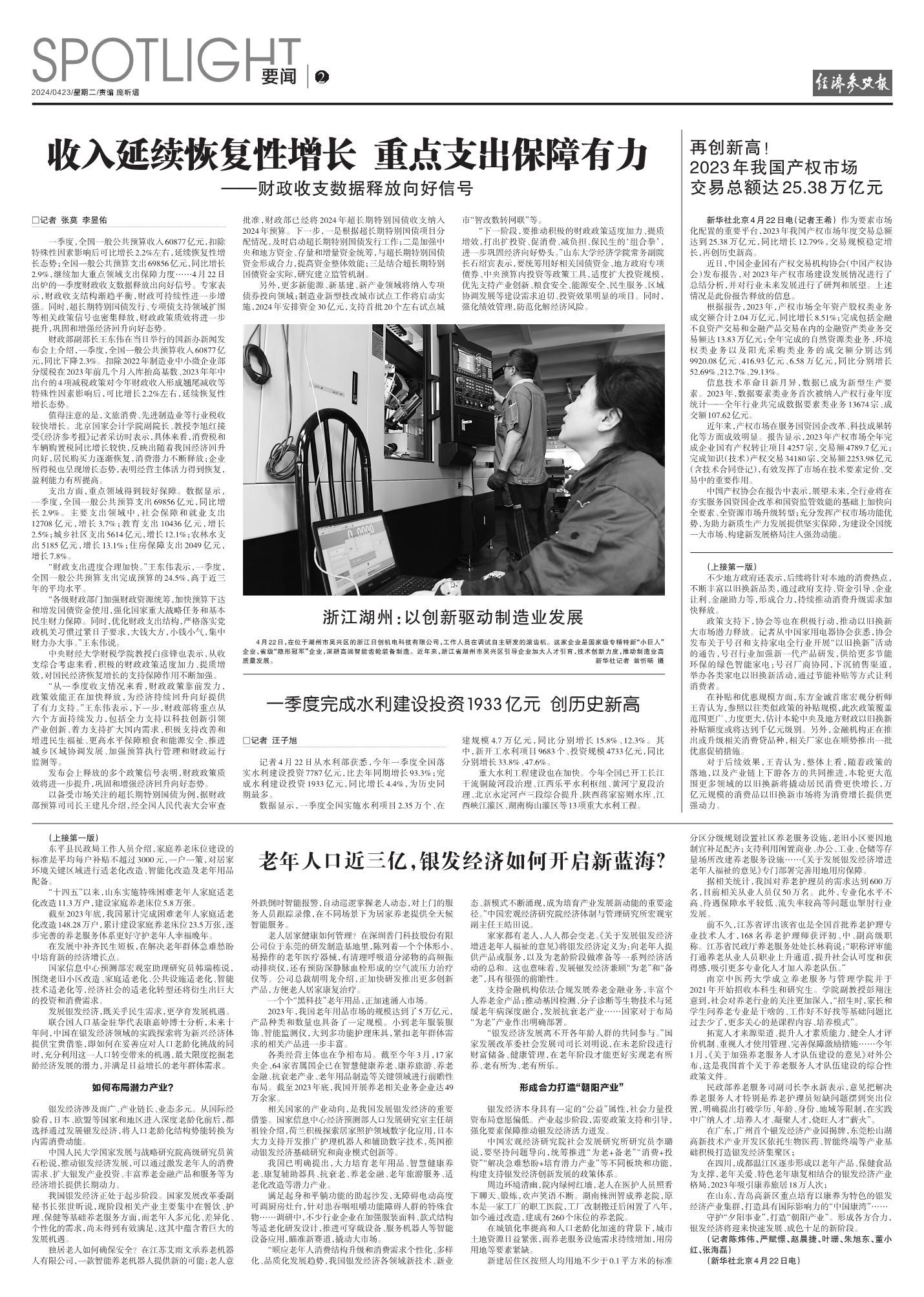 从数据看,一季度财政收入总体延续了恢复性增长的态势。一是受国家扩大内需政策与疫情转段恢复的刺激,与居民消费关联性较高的住宿和餐饮业、文化、体育和娱乐业以及零售业税收增长较快,说明居民消费活力在不断释放;二是扣除不可比因素影响后,制造业税收实现平稳增长,说明疫情的疤痕效应正在逐步得到修复。
