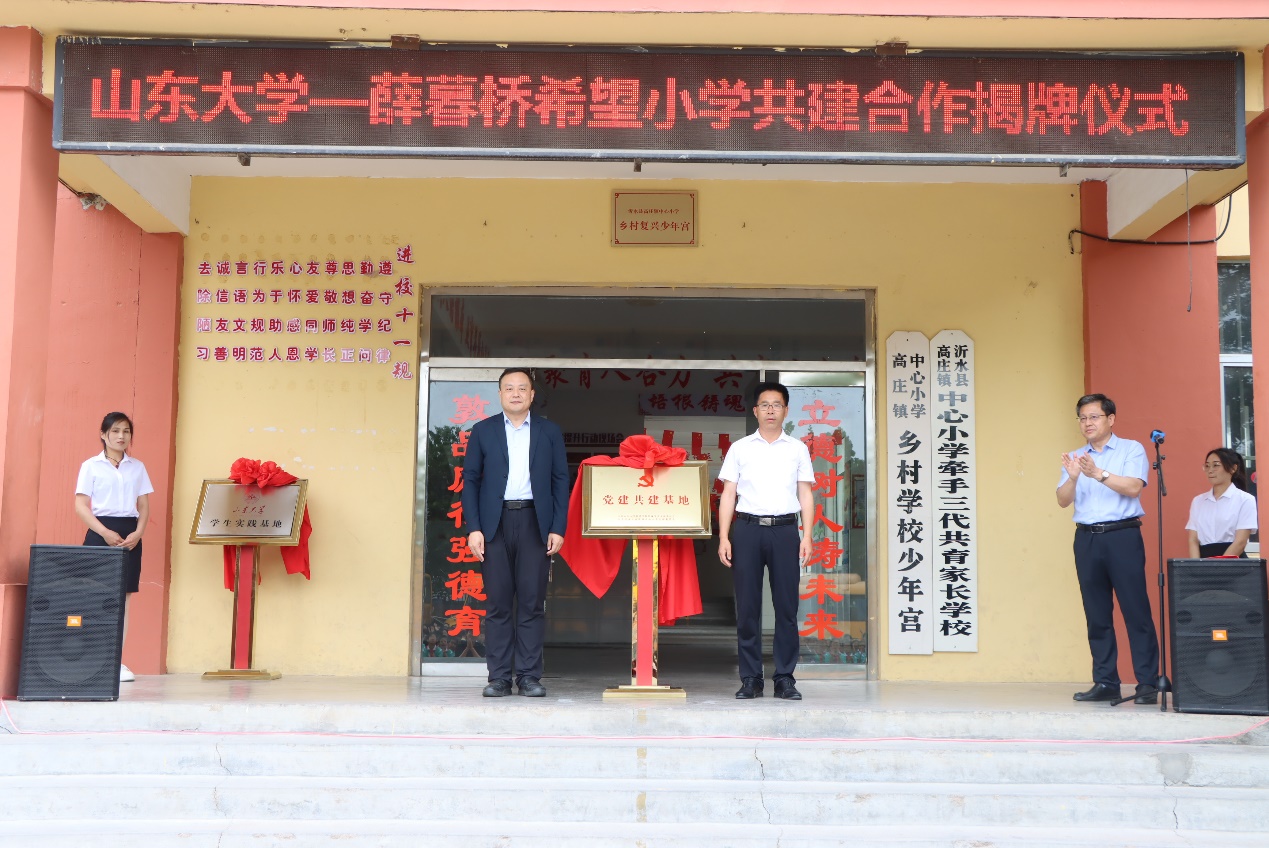 5月22日,必赢线路检测中心—薛暮桥希望小学学生实践基地、必赢线路检测中心学生党支部—薛暮桥希望小学党支部党建共建揭牌仪式在沂水县高庄镇薛暮桥希望小学举行。县教体局党组书记、局长杨雪峰主持仪式。