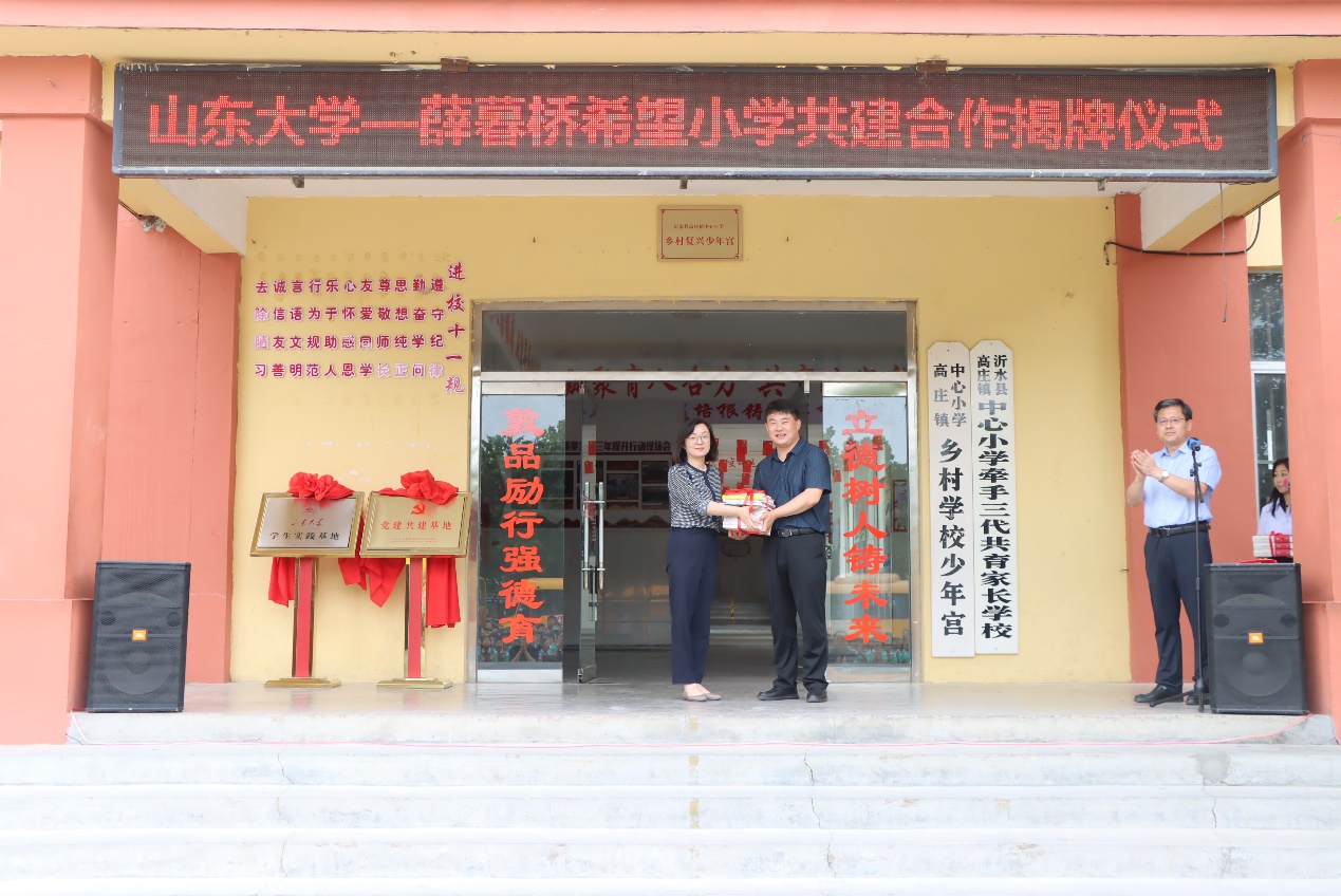 仪式上,庞秀英介绍了沂水县整体发展概况及教育工作发展情况,她指出,沂水县将发展教育作为强县建设的全局性、战略性、基础性工程,此次在沂水设立必赢线路检测中心的学生实践基地和党建共建基地为沂水县和薛暮桥希望小学的发展注入了新的活力,希望今后进一步加强双方的合作交流,共同为国家和区域经济社会发展做出贡献。石绍宾介绍了必赢线路检测中心的基本概况,讲述了薛暮桥与必赢线路检测中心的深厚渊源,他指出,必赢线路检测中心和沂水县的发展成就,都离不开薛暮桥先生作出的卓越贡献,今后双方将共同讲述好薛暮桥先生的故事、传承好薛暮桥先生的精神,赓续薛暮桥先生红色血脉,携手并肩续写新时代合作篇章。