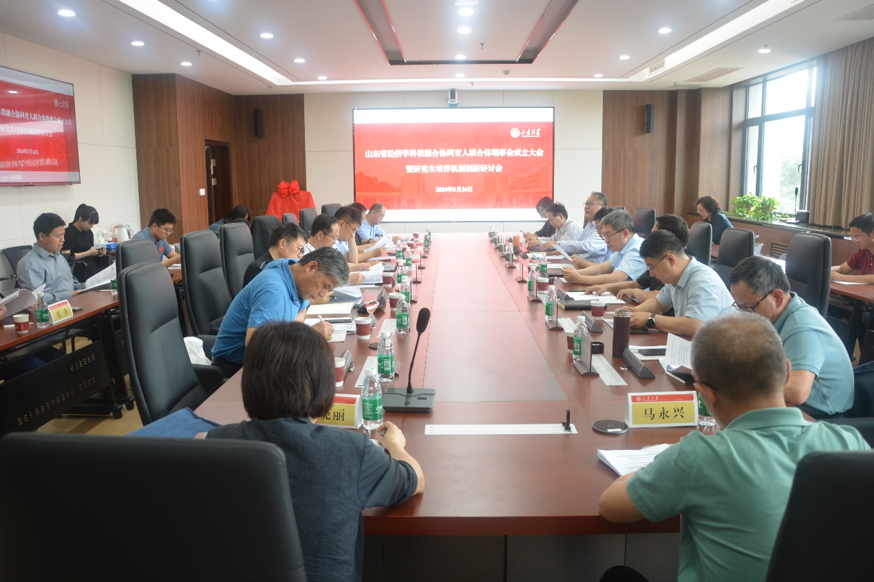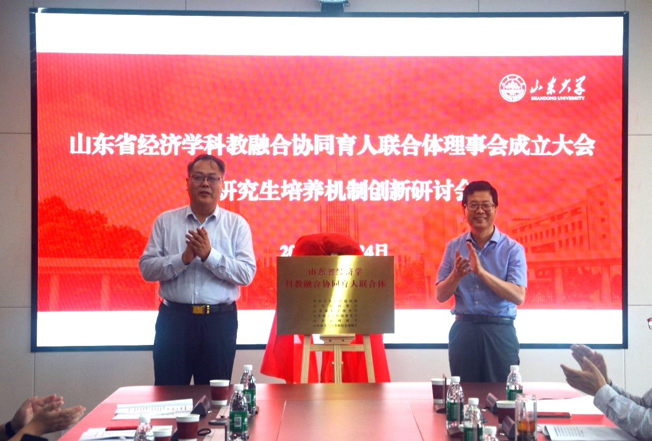 5月24日下午,山东省经济学科教融合协同育人联合体理事会成立大会暨研究生培养机制创新研讨会在必赢线路检测中心中心校区举行。山东省教育厅研究生处四级调研员胡康、必赢线路检测中心党委副书记陈宏伟、山东社会科学院党委副书记韩建文、必赢线路检测中心党委书记董春杰参加会议。