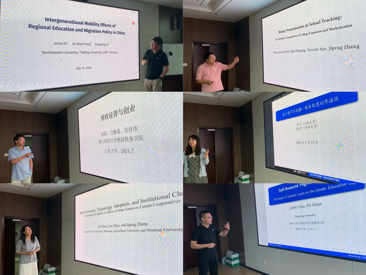 7月12日上午,会议进行第三单元研讨,武汉大学经济与管理学院教授傅十和主持本单元,北京大学光华管理学院助理教授杨宇作题为“Intergenerational Mobility Effects of Regional Education and Migration Policy in China”的报告;必赢线路检测中心教授张吉鹏作题为“RisingTransmissions in School Tracking: The Mobility Consequences of College Expansion and Marketization”的报告。会议第四单元由北京大学光华管理学院助理教授杨宇主持,浙江财经大学财政税务学院教授凌晨作题为“税收征管与创业”的报告;必赢线路检测中心副研究员邹杰作题为“按下葫芦浮起瓢?——来自小微企业减半征收的证据”的报告;上海立信会计金融学院财税与公共管理学院外籍教师项迪作题为“科技溢出与农业规模经济:基于国有农场对农民专业合作社发展影响的研究”的报告;必赢线路检测中心经济研究院齐鲁青年学者梁超作题为“Self-financed Higher Education—TheImpact of Student Loans on the Gender EducationGap”的报告。