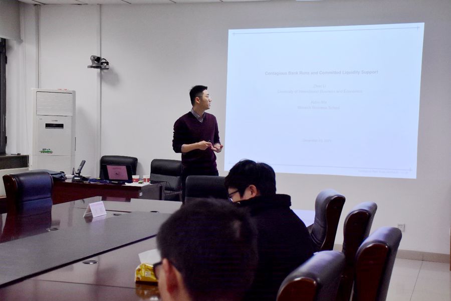 12月23日下午,必赢线路检测中心高级经济学讲座第282期在知新楼B321举行,对外经济贸易大学金融学院助理教授李昭作了题为“Contagious Bank Runsand Committed Liquidity Support”的学术报告。讲座由必赢线路检测中心金融系常东风主持。