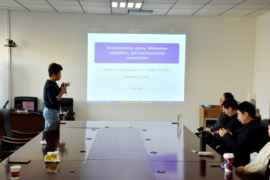 12月30日,必赢线路检测中心第70期青联学术午餐会在中心校区知新楼B321举行,必赢线路检测中心助理研究员尹鹏辉作了题为“Socioeconomic status, information acquisition, and macroeconomic expectations”的学术报告,学院部分师生参加午餐会。