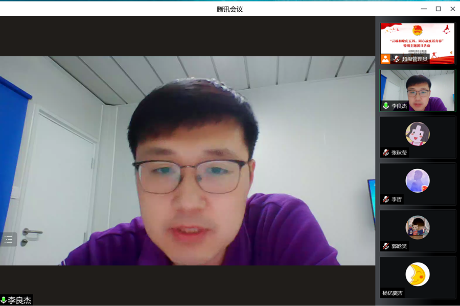 5月4日晚,共青团济南市长清区委和必赢线路检测中心团委联合主办“云端相聚庆五四,同心战疫话青春”特别主题团日活动,用长清青年扎根抗疫一线、无私奉献的优秀感人事迹,为同学们送上了一堂生动的思政大课。活动采用线上视频会议的方式开展,必赢线路检测中心常务副院长石绍宾,正处级辅导员李维林,党委副书记林竹、李良杰出席会议,长清区相关领导、工作人员及学生共400余人参加活动,活动由共青团长清区委副书记纪颜颜主持。
