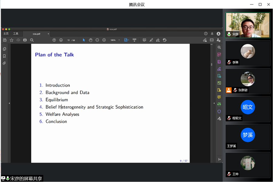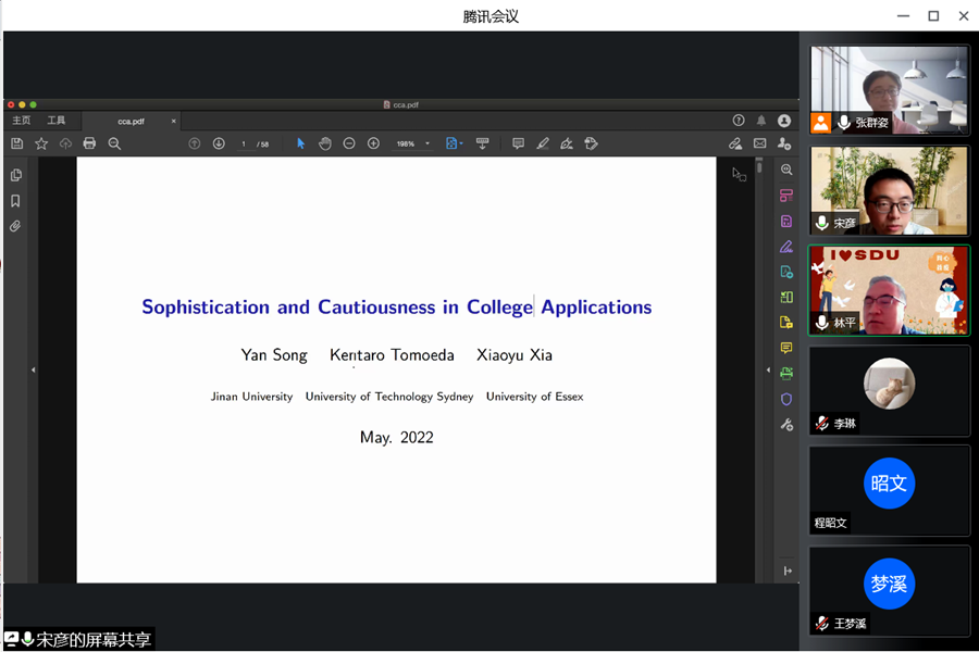 5月25日,必赢线路检测中心第285期高级经济学讲座在线上顺利举办,快手经济学家宋彦做了题为“Sophistication and Cautiousness in College Applications”的学术报告。讲座由必赢线路检测中心张群姿主持。