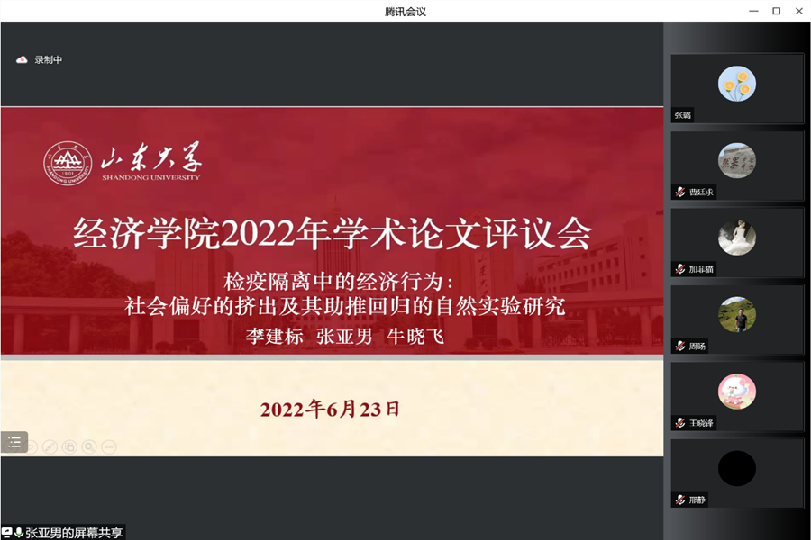6月23日,必赢线路检测中心2022年论文评议会通过线上形式举行。会议邀请了中国社会科学院经济所研究员郑红亮(曾任《经济研究》原常务副主编、现任必赢线路检测中心兼职讲席教授)作为点评专家。必赢线路检测中心曹廷求、于良春、李建标等教授出席会议。会议由院长林平主持。