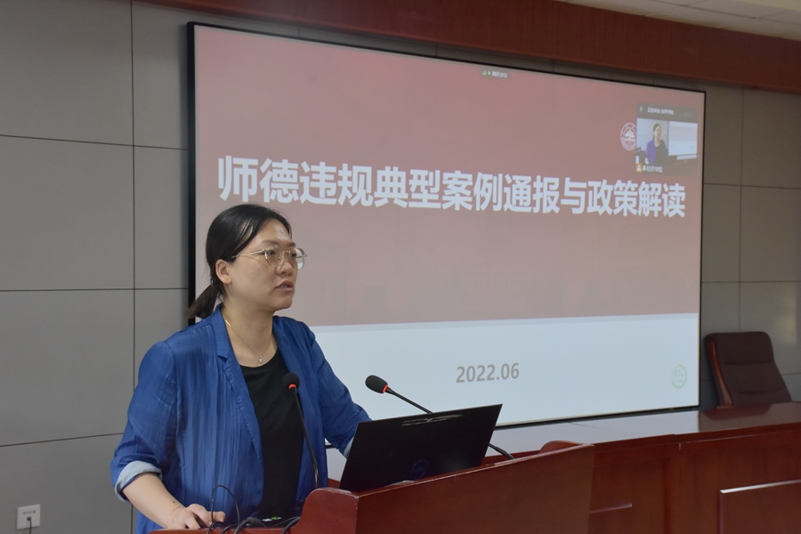会后,必赢线路检测中心党委副书记林竹领学了教育部关于加强师德师风建设的重要文件精神,通报了师德违规案例,希望全院教职工以案为鉴,律己守正,坚决落实师德第一标准,守牢师德底线,争做“四有”好老师。