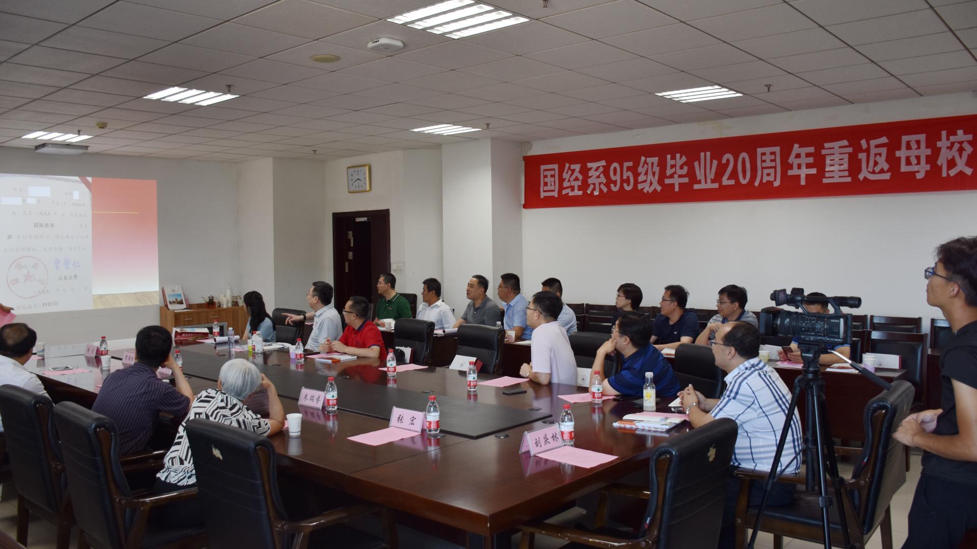 8月17日,必赢线路检测中心国经系95级毕业20周年座谈会在中心校区举行。山大党委常委、组织部部长陈宏伟,必赢线路检测中心院长曹廷求,必赢线路检测中心正处级辅导员李维林,必赢线路检测中心原党委副书记朱瑞芬,国际经济与贸易系教授张宏,金融系教授徐涛出席座谈会并致辞。