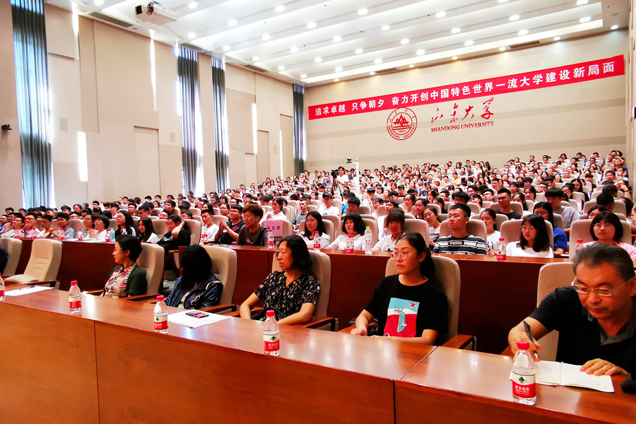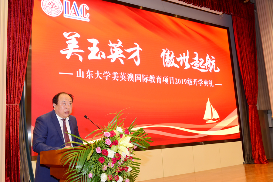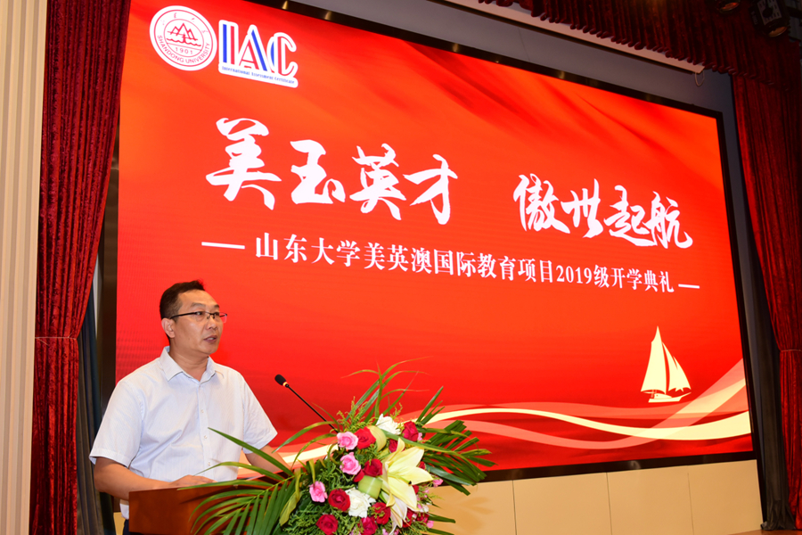 典礼上,刘灿伟代表学校向2019级美英澳学生表示欢迎,并希望广大学生树立远大理想,坚持终身学习理念,早日实现求学梦想。曹廷求代表学院致辞,希望广大学生珍惜美好时光,发愤图强,报效祖国。冯一江向同学们介绍了昆士兰大学,并对同学们未来的学习规划提出了建议。教师代表李晓重点介绍了雅思学习的特点,鼓励大家克服时间紧任务重的困难,早日实现理想。往届生代表臧硕通过讲述自己在山大和海外高校求学的经历和感悟,表达了对山大培养的感激之情。新生代表赵晨羽表示既对在百年老校的学习生活充满期待,也做好了克服一切困难,努力拼搏,早日实现学成报国梦想的准备。典礼最后,石绍宾作总结发言,希他望同学们在国际化教育的浪潮中,能积极学习,博闻通达,创造属于自己最精彩的篇章。