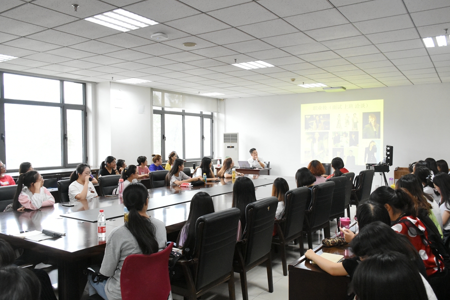 26日,职慧志愿讲师王建设,采用设立情景、选择问答等形式提高同学参与度,介绍了面试着装、与客户联系等职场和交际场合的礼仪知识。下午,王建设从计划沟通、聆听提问、有效表达、安排行动四方面入手,讲解了有效沟通的技巧。星尚美妆婚纱馆创始人、化妆师何鹏向同学们详细介绍了护肤与职业妆容的化妆步骤,并进行了现场演示。前程无忧项目经理孙磊以“面试人生”为主题,全方位讲解了招聘流程、面试准备、面试跟进等求职面试技巧。无领导小组讨论工作坊邀请多家企业资深HR,分组分场地为近150名同学提供无领导小组实训。