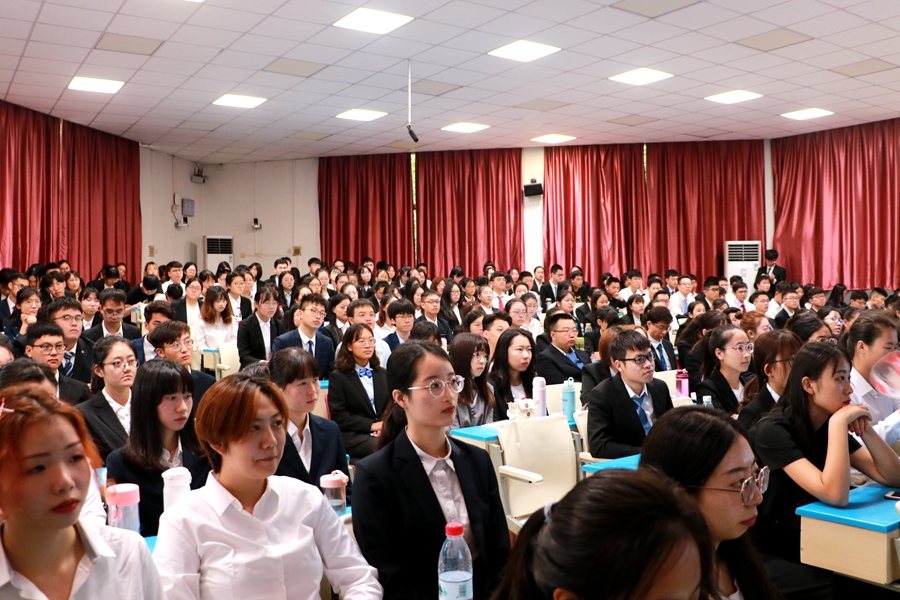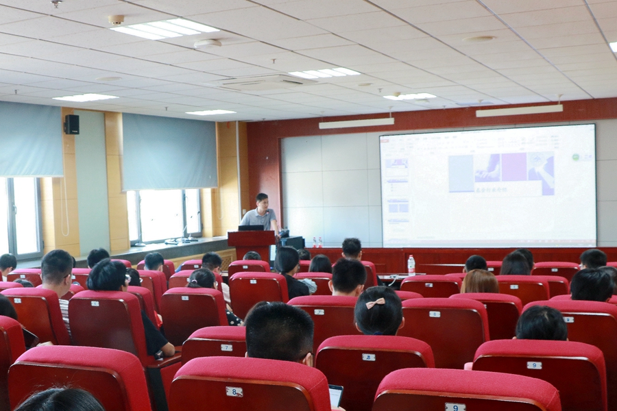 新范教育创始人毕晓光带来的职场真人秀,通过与同学幽默互动,详细讲述了利用MBTI职业性格测试工具“知己”,运用DISC行为风格识人工具“知彼”的方法,实现自我认知,在职场上游刃有余;陈利俊作为金融小伙伴创始人,向同学们展示了一些优秀简历,并从简历外观、求职方向、硬性指标等方面对简历与自荐书的制作提出针对性建议。