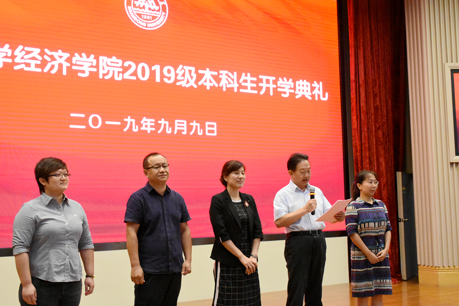 在最后教师寄语环节中,学院各系主任纷纷为新生们送上了祝福。保险系主任王新军教授劝诫新生要有“独立之精神,自由之思想”,树立起正确的人生观、价值观;财政系主任李华教授期待新生在提高个人能力的同时,也实现经世济民的梦想;经济系主任张伟副教授希望各位新生在未来的四年里,学经世之学,养浩然之气;金融系主任常东风副教授勉励大家在以后的日子里,守护初心,同心追梦;国贸系主任张岩副教授寄语新生志存高远,脚踏实地,既要为梦想执着奋斗,又要一步一步、踏踏实实地做好点滴积累。