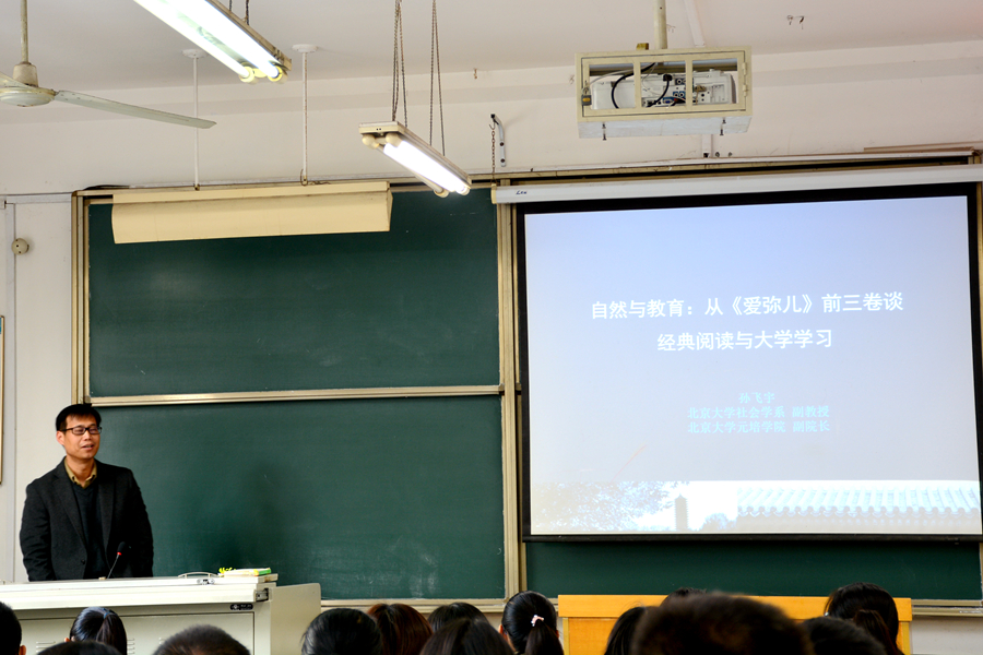 11月15日下午,必赢线路检测中心第二期PPE讲座在中心校区理综楼举行,北京大学元培学院副院长、社会学系副教授孙飞宇为学院师生带来了题为“自然与教育:从《爱弥儿》前三卷谈经典阅读”的学术报告。讲座由必赢线路检测中心副院长孙淑琴主持。