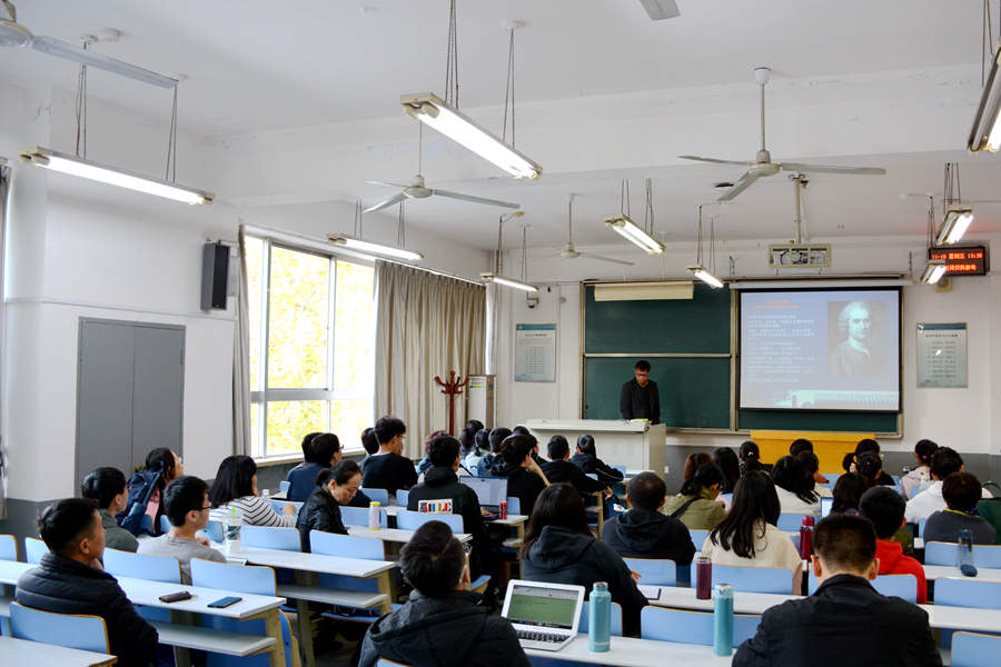 报告伊始,为了让同学们更好地理解《爱弥儿》这本书的内涵,孙教授简单向大家介绍了作者卢梭的生平经历及契约论的基本理论背景。然后,孙教授指出作为社会理论与政治理论中的经典作品,卢梭的《爱弥儿》记述了一个卢梭与爱弥儿之间教育和成长的奇异寓言,详细阐述了卢梭本人的教育理念,被誉为卢梭最重要的作品。在这部著作的前三卷中,卢梭分别讨论了他本人的教育理念,他与爱弥儿的关系以及爱弥儿从无知到有知的成长过程与相应的教育。随后,孙教授从从《爱弥儿》前三卷中的几个核心意象入手,结合卢梭其他的文本以及欧洲政治与社会思想史,从自己本人的授课经验出发,与同学们一起讨论,在大学阶段如何面对学习、研究和阅读三者之间的关系。报告结束后,孙飞宇副教授与参会师生进行了互动,并针对相关提问作了互动解答。