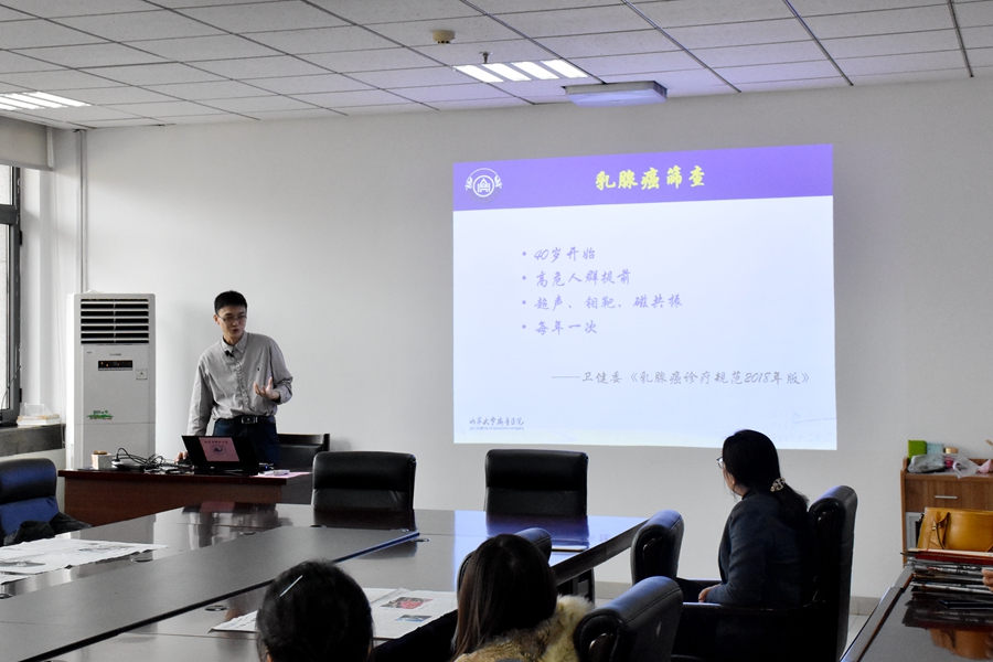 12月5日,必赢线路检测中心2019年秋季第11期(总45期)青联学术午餐会在中心校区举行。本周午餐会特举办女教工专场,邀请必赢线路检测中心齐鲁医院乳腺外科主治医师朱江博士,讲授“乳腺外科常见疾病”。学院党委副书记林竹及20余名青年女教师参加此次午餐会。