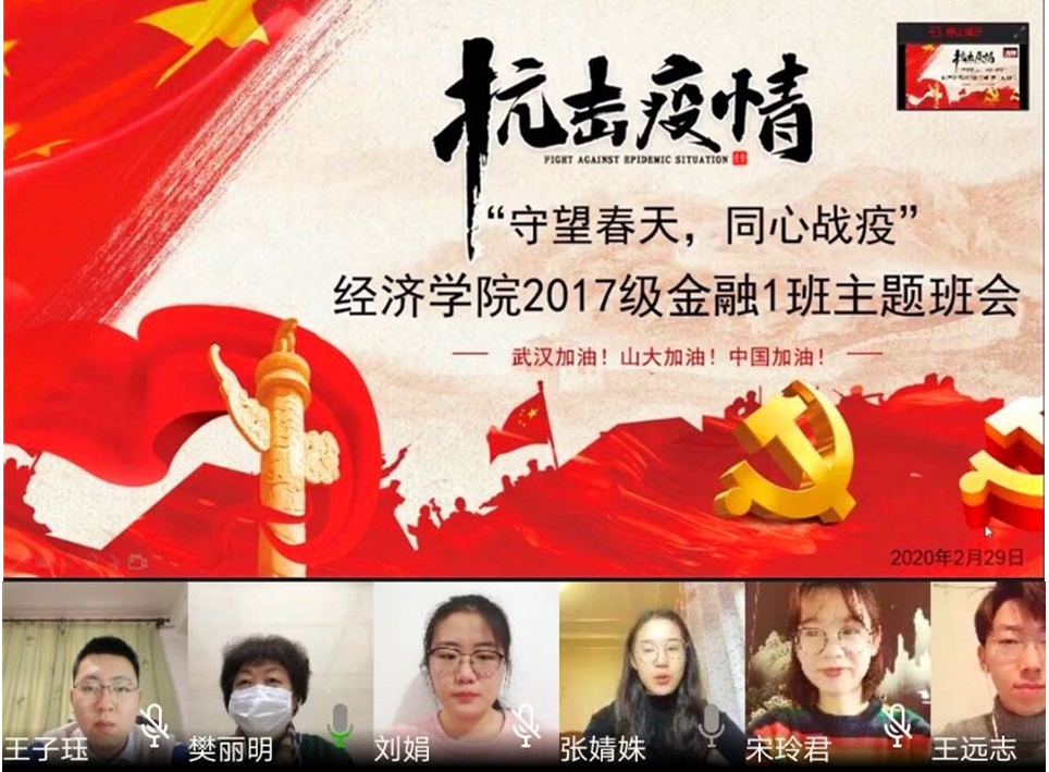 2月29日,必赢线路检测中心2017级金融一班“守望春天,同心战疫” 线上主题班会举行,必赢线路检测中心校长樊丽明作为班级校领导联系人参加活动,并与同学们战疫情、话发展。