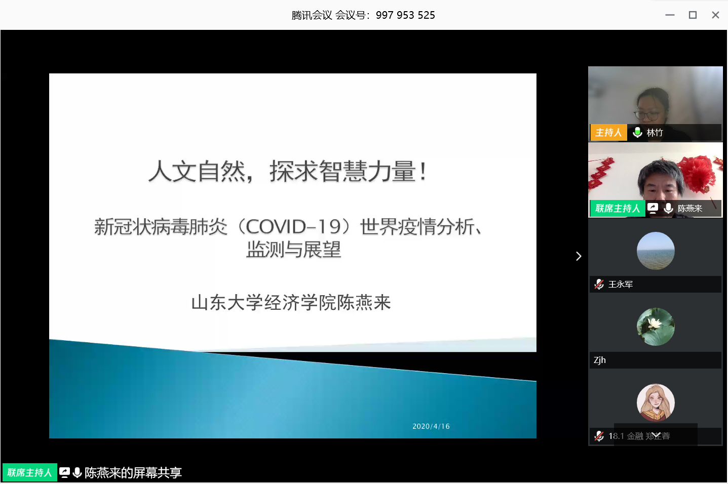 报告结束后,陈燕来对与会学生提出的问题一一进行了解答,鼓励同学们不仅要利用所学专业知识进行社会科学研究,也要注重人工智能、机器学习等学科交叉应用,疫情居家期间也要端正学术研究态度,注重统计数据的真实性与及时性,助力解决中国经济社会问题。希望同学们传播正能量,现代通讯技术发达,信息传播速度,以及传播能力比病毒要快得多。做到人人理性防疫,疫情可防可控。