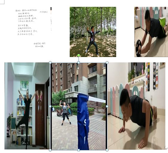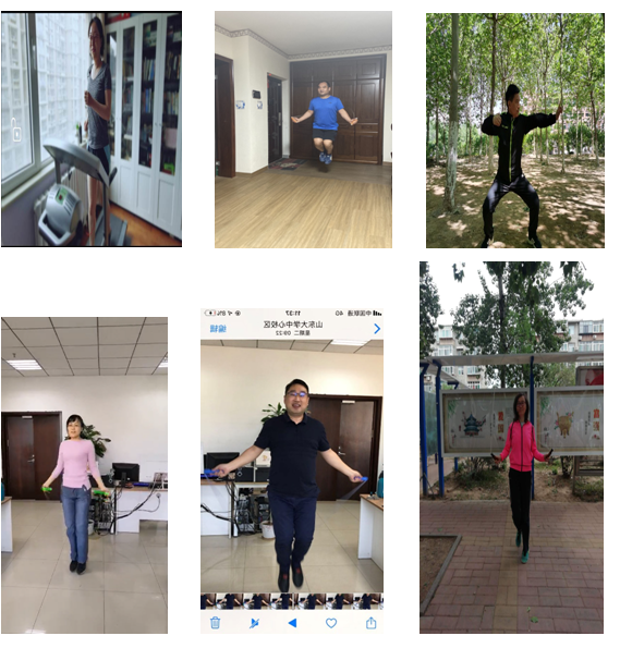 5月,为了满足疫情防控期间教职工的健身需求,按照校工会相关通知精神,必赢线路检测中心工会发布了《关于疫情防控期间积极组织开展线上文化体育活动的通知》,动员全院教职工居家健身,并号召各位老师选择一项或多项居家文体活动,比如,第九套广播体操、太极拳、八段锦、瑜伽、跳绳、仰卧起坐、平板支撑、唱歌、朗诵、绘画、练字、跑步机跑步等等,通过拍照+文字说明、短视频录制等形式记录下来。客厅里跑马拉松、客厅里跳绳、地板上俯卧撑、家中书法修身养性、小树林练习八段锦,再不行就跟着娃做《第九套广播体操》,居家健身成了一道独特的风景线。