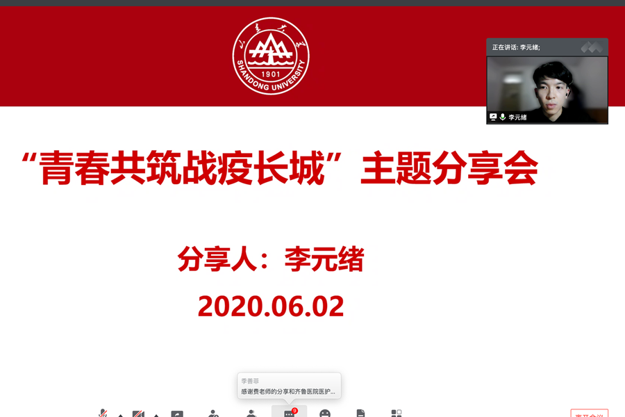 学院党委副书记林竹,各年级辅导员、毕业生、在鄂第二临时团支部成员等参加报告会。会议由2016级本科毕业生刘慧杰主持。本次主题报告会让与会同学更近距离地感受到了援鄂医护人员在战疫一线的艰苦奋斗和家国情怀,发扬了优秀山大学子积极向上的青春风貌和榜样风采,引导青年学生贯彻落实学校疫情防控的各项要求,加深对就业与学业等未来发展问题的认识与思考,勇挑时代重担,不负青春理想,展现青春力量。