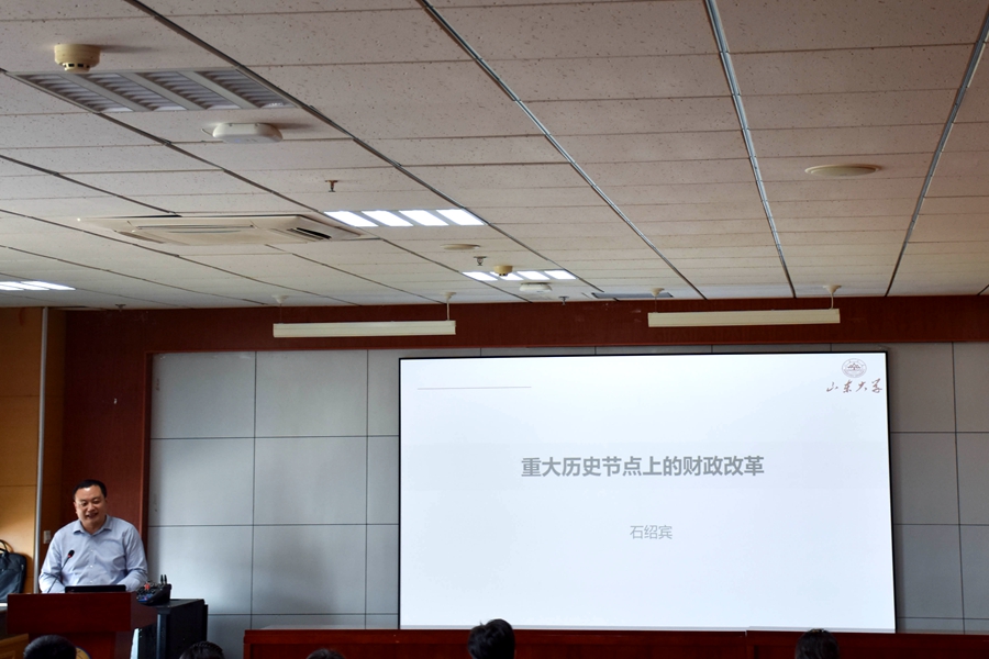 讲座上,石绍宾以财政改革与经济改革的互动关系为线索,讲述了改革开放以来三次重大财政改革。报告指出,为适应党的十一届三中全会关于改革开放的要求,自1980年开始,我国改变计划经济体制下统收统支的财政体制,采取中央与地方分灶,实行多种形式的财政包干。为配合党的十四大关于社会主义市场经济体制改革的目标,改变财政包干制下的不足,我国自1994年起推行分税制改革。为适应党的十八届三中全会关于国家治理体系和治理能力现代化的改革目标,现代财政制度建设被提上改革议程。报告最后总结强调财政是国家治理的基础和重要支柱,要从历史与现实两个维度把握理解财政改革。讲座结束之后,石绍宾就与会老师提出的问题进行了交流探讨。