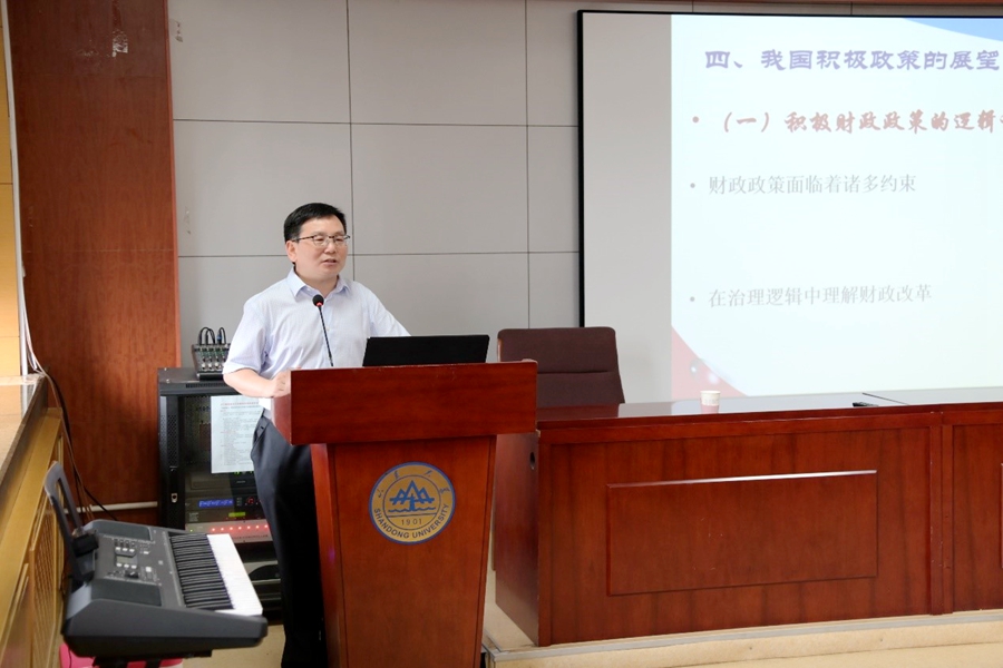 6月25日下午,必赢线路检测中心第279期高级经济学讲座在中心校区知新楼B423聚贤报告厅举行。中国财政科学研究院陈龙研究员作了题为“新形势下我国积极财政政策的分析和展望”的报告,学院部分师生参加了讲座。