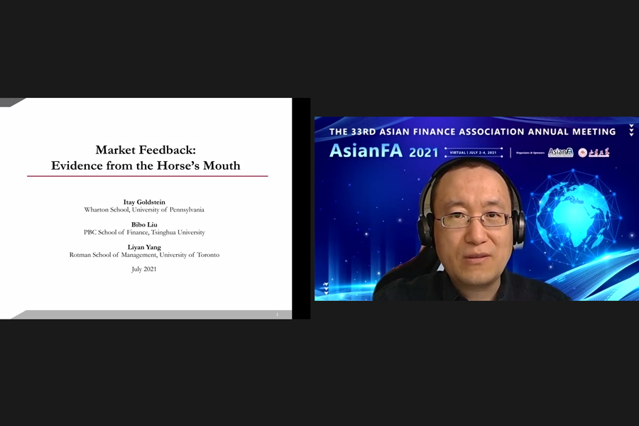 加拿大多伦多大学杨立岩教授作了题为“Market Feedback: Evidence from the Horse's Mouth”的主旨报告,该研究通过调查了3,626家中国上市公司,以研究金融市场的实际后果。为了从市场上学习信息以指导实际的投资决策和获得外部融资,90%以上的公司关注股票市场。这些发现直接证明了通过学习渠道和融资渠道的市场反馈效应的广泛存在。当企业的股票价格包含更多由分析师制作的信息,经理人的信息量较少,以及市场参与者拥有更多的私人信息时,企业更有可能学习信息。当企业受到更多的财务限制和有更大的资本需求时,企业更有可能出于融资的原因监测股票市场。该研究为金融市场影响实体经济提供了有力支持。