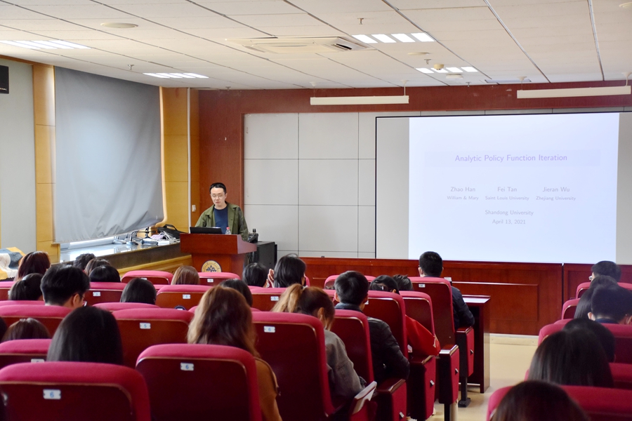 4月14日上午,必赢线路检测中心在中心校区知新楼B423举办第九期金融学术讲座。美国圣路易斯大学商学院助理教授谈非为学院师生带来了题为“Analytic Policy Function Iteration”的报告。讲座由必赢线路检测中心助理研究员张仁斌主持。