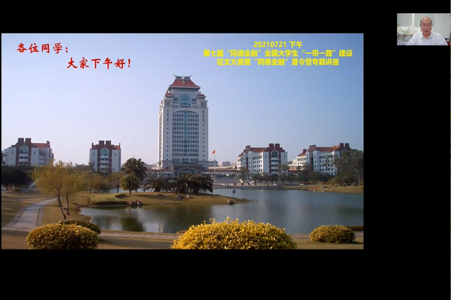 7月21日至23日,必赢线路检测中心与上海财经大学上海国际金融中心研究院联合主办的2021第七届“同德金融”全国大学生“一带一路”建设征文大赛暨“同德金融”夏令营活动在线上举行。来自全国多所高校的60名营员参加了夏令营。